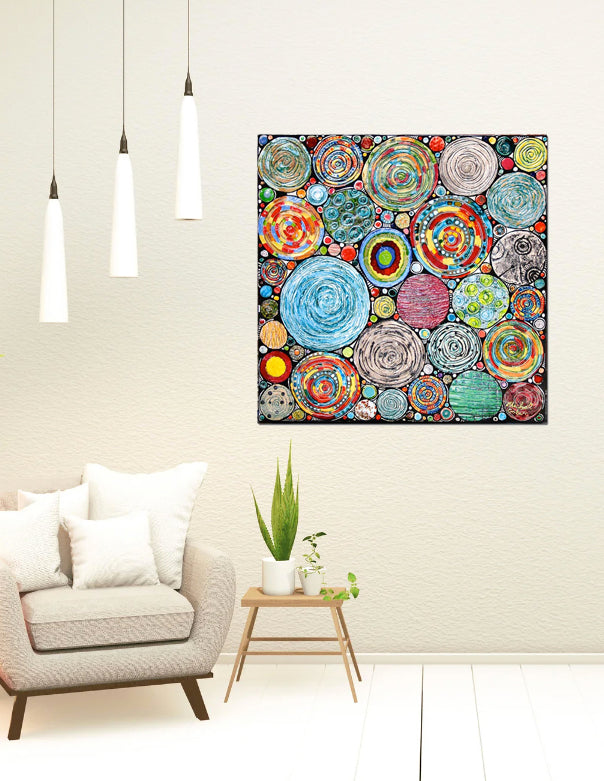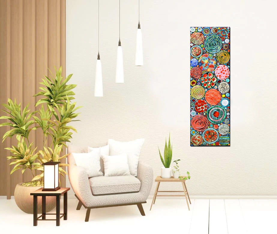 In my work, the symbol of the circle represents femininity and womanhood. This series of brightly colored circle mosaics represents the empowerment of women to inhabit bright, unapologetic models of femininity. The circles of various sizes, shapes, and textures boldly utilizing the space of the mosaic represent the diversity of woman reclaiming their womanhood and resisting the profound social pressures placed on woman to exist only in closely controlled aesthetic and political modes. Read More