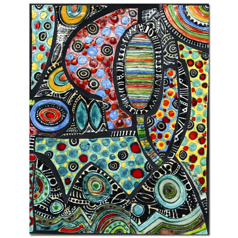 The black spaces represent the mysterious, still unknowable essence of the growing child, whose existence interpolates the mother’s being in countless ways, but who remains out of sight until birthed into the world. MATERIALS: White Stoneware, Sculpture Clay, Lowfire Glazes, Underglazes & Oxides DIMENSIONS: 40 inches ( 101.6 cm ) X 60 inches ( 152.4 cm )