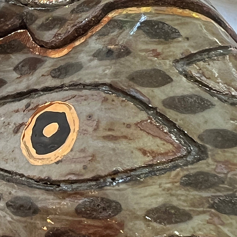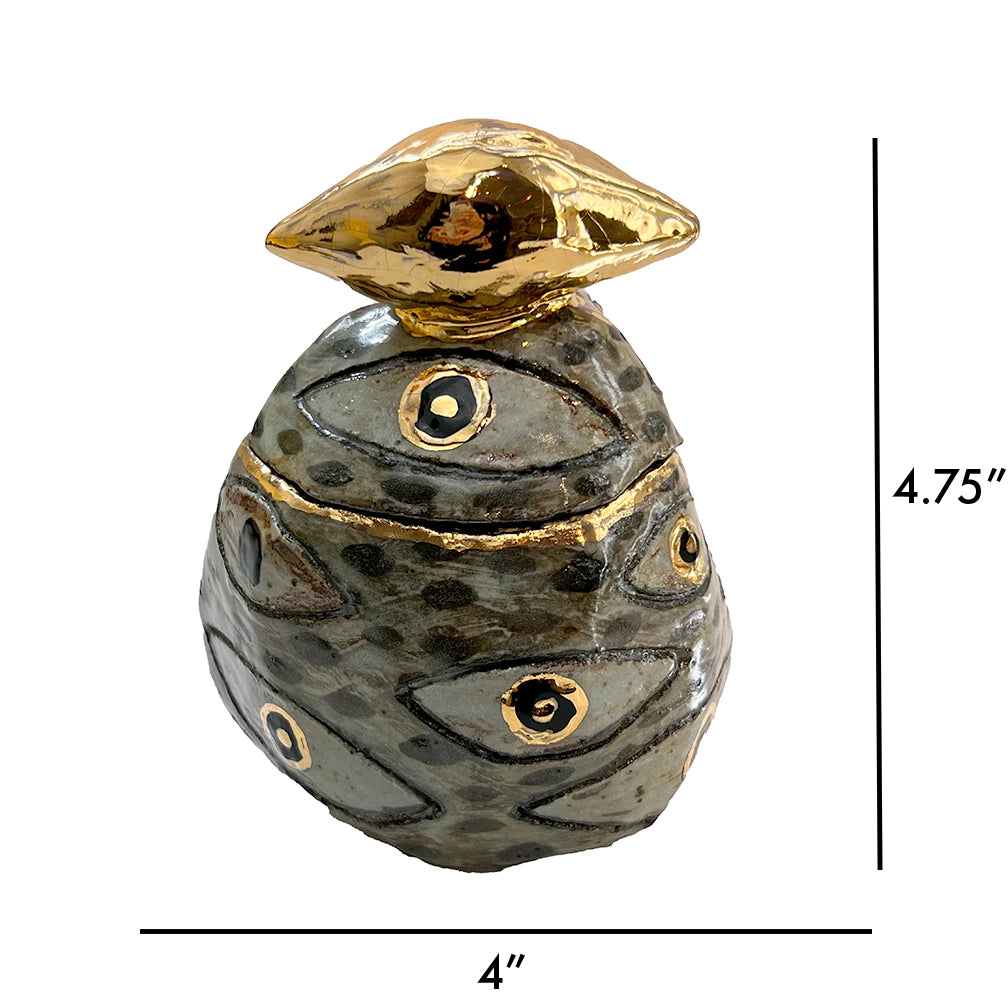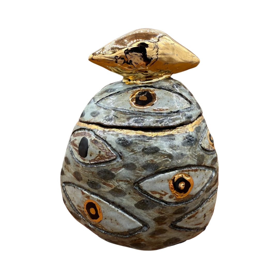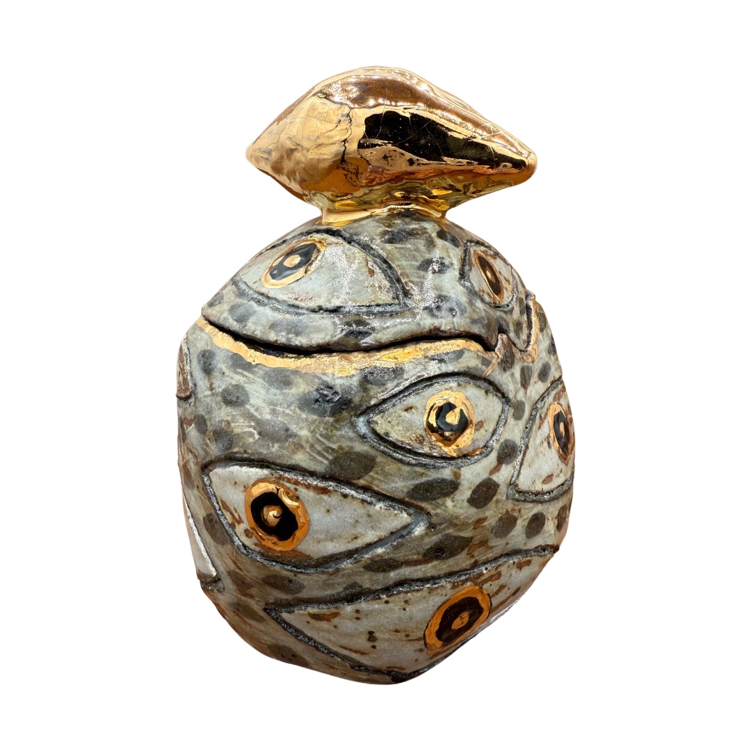 Materials: Sculpture clay, high fire and low fire glazes, 24k gold lustre
