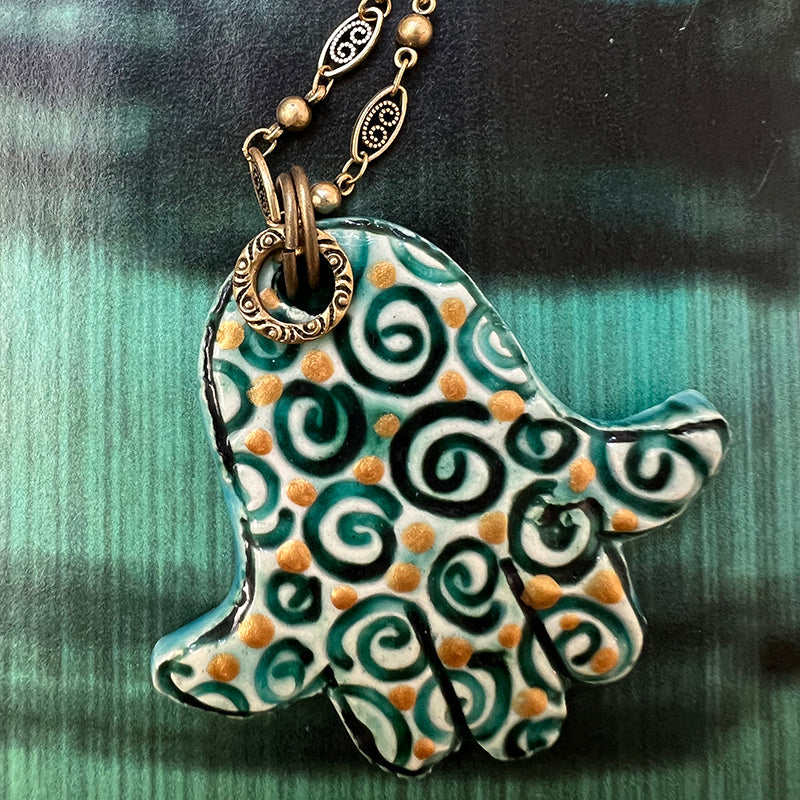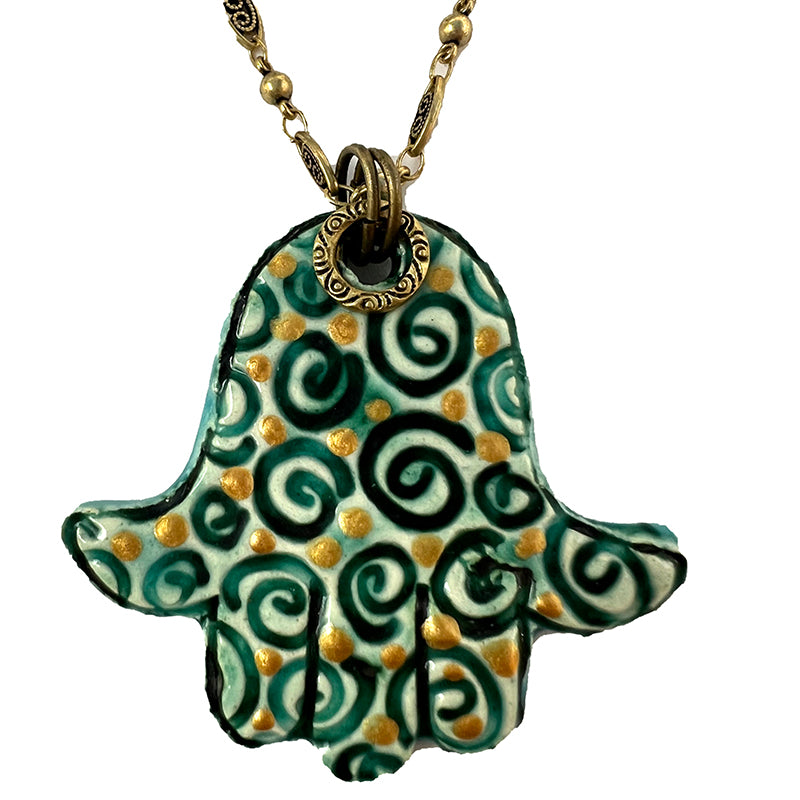 Ceramic Teal Hamsa Swirl Pendant Necklace