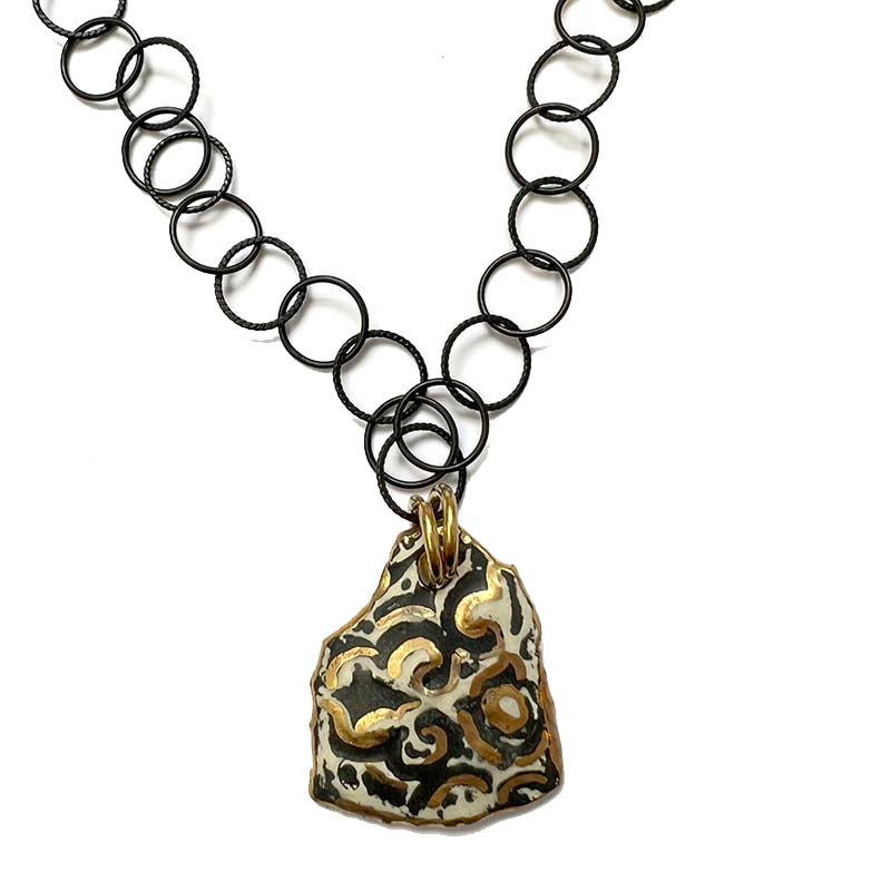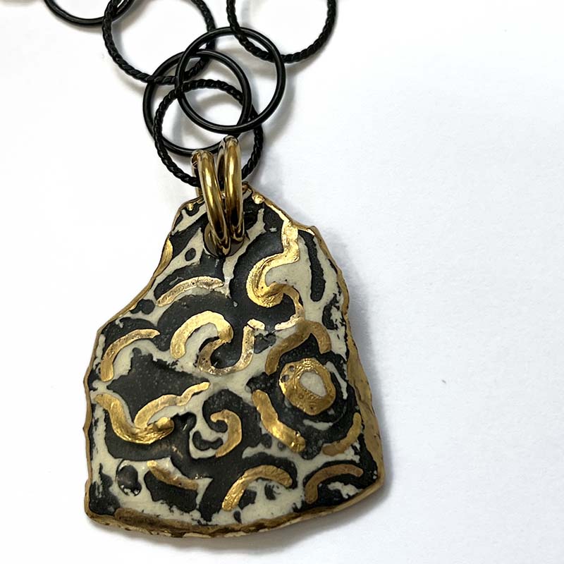 Gold and Black Organic Swirl Pendant Necklace