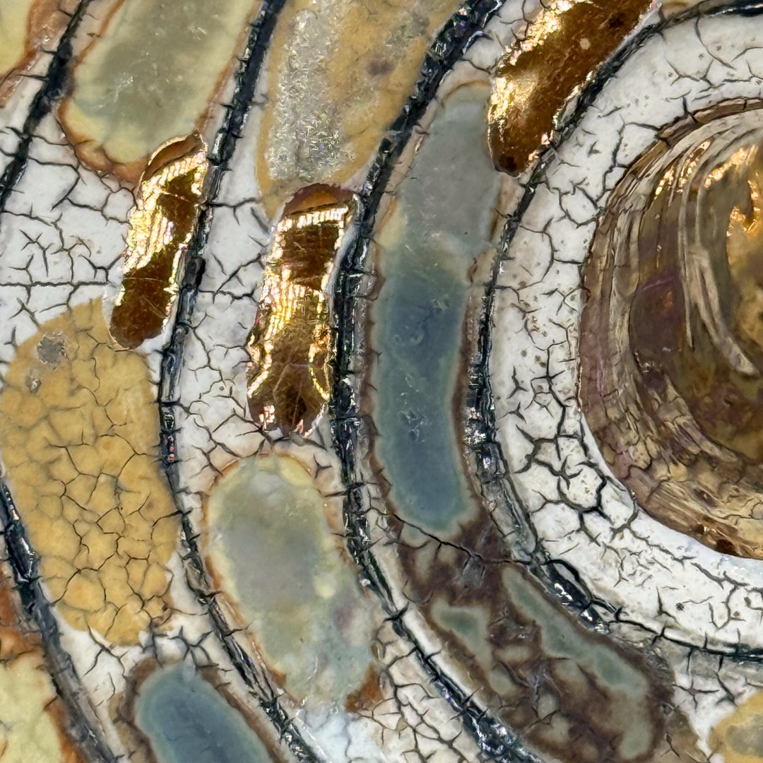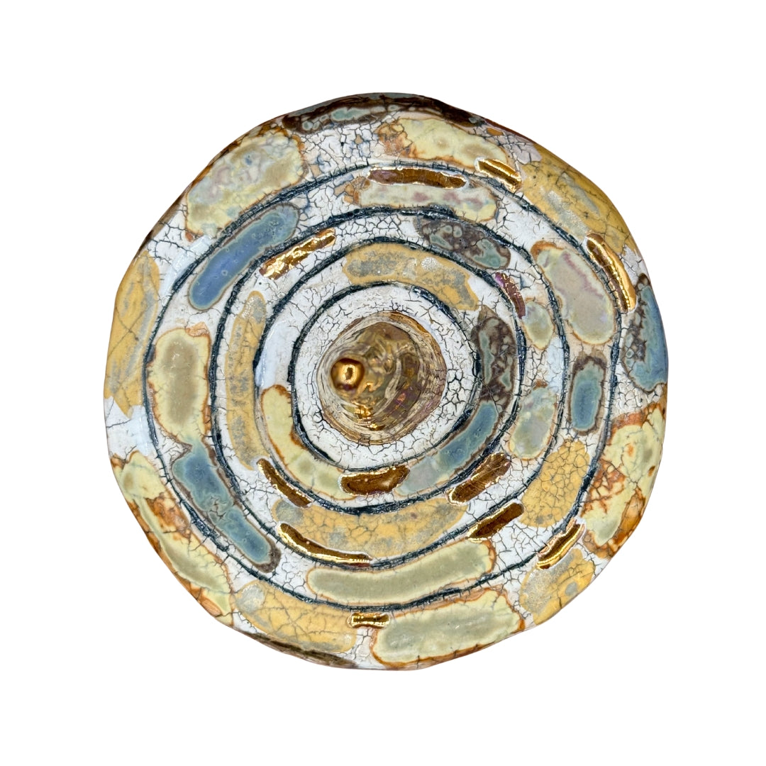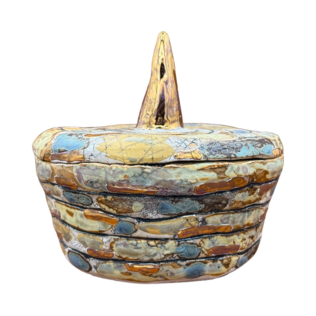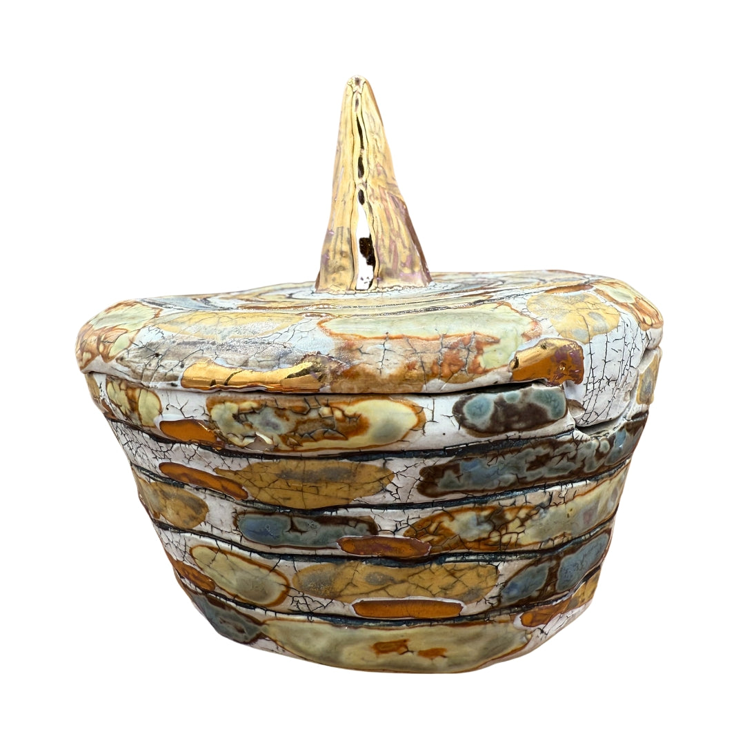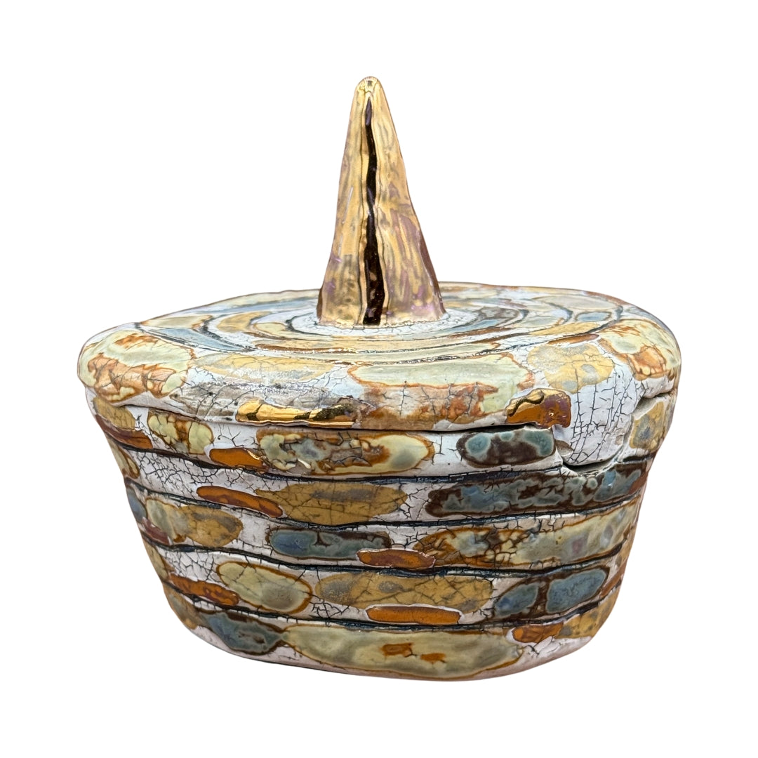 Materials: Sculpture clay, high fire and low fire glazes, 24k gold lustre