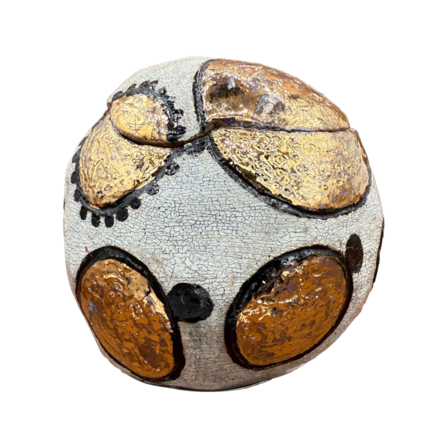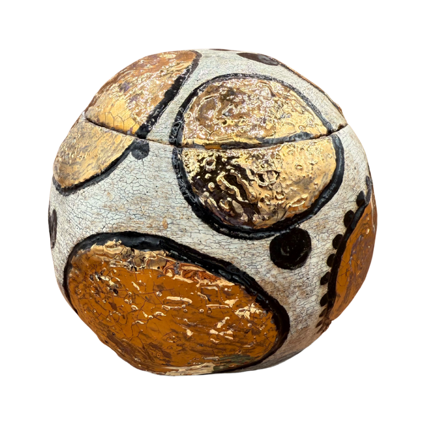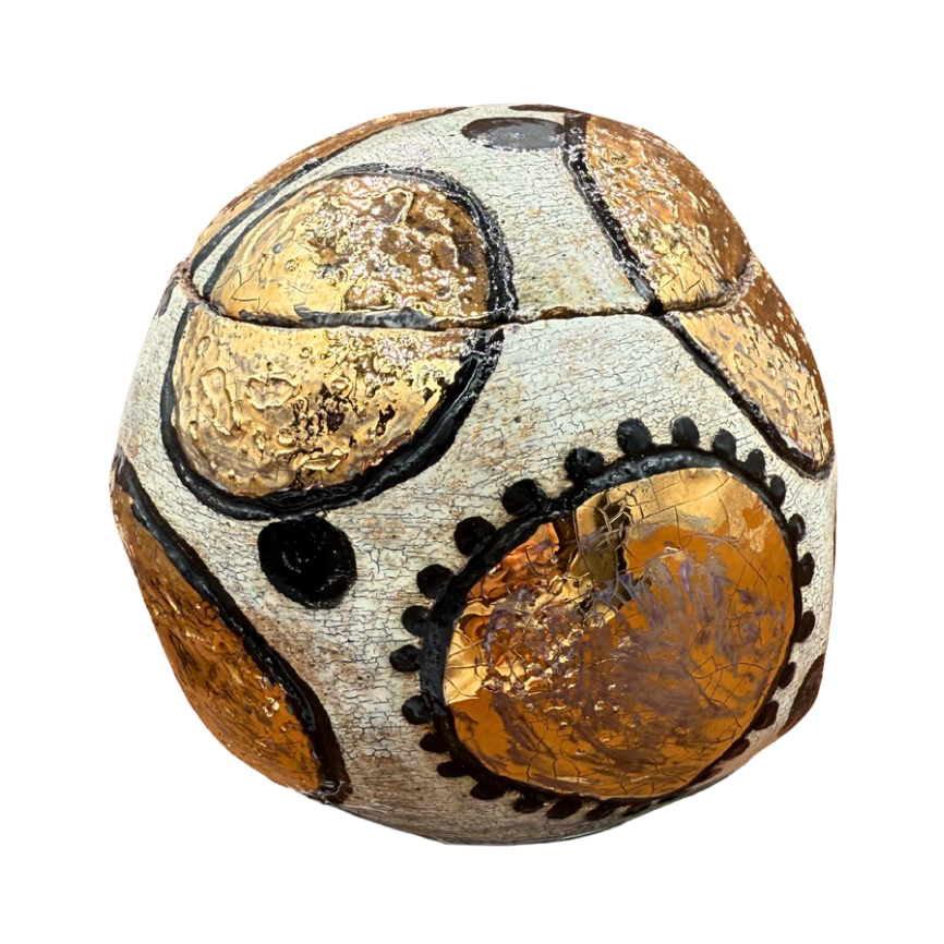 Materials: High fire sculpture clay with terra sigillata, glaze, and gold luster