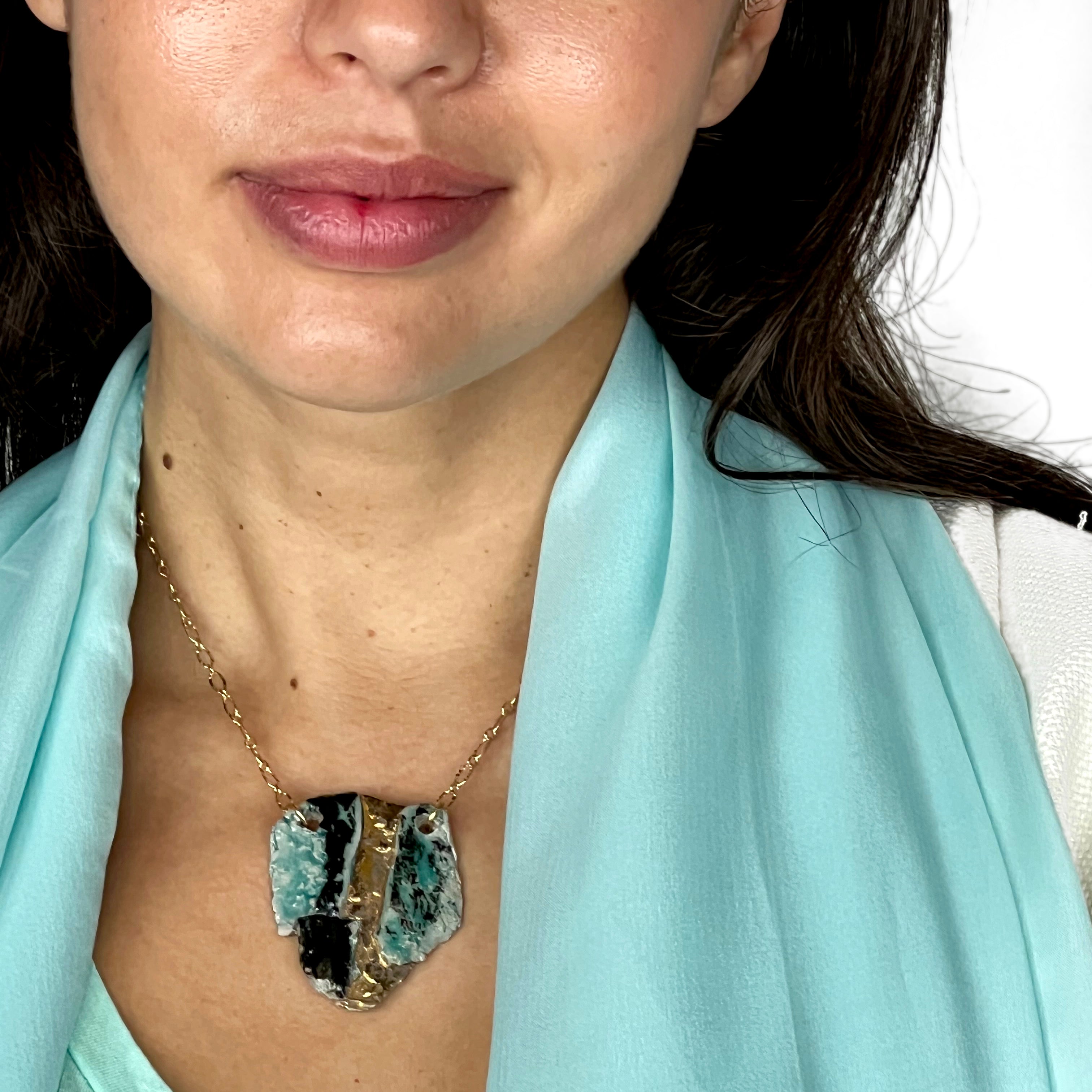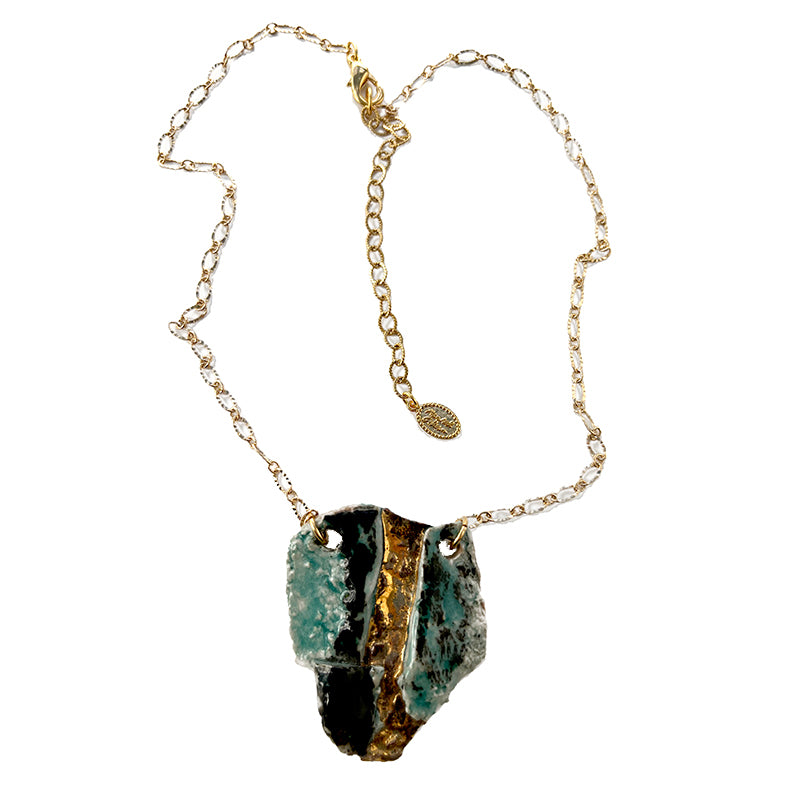 Turquoise & Gold Ceramic Fragment Necklace