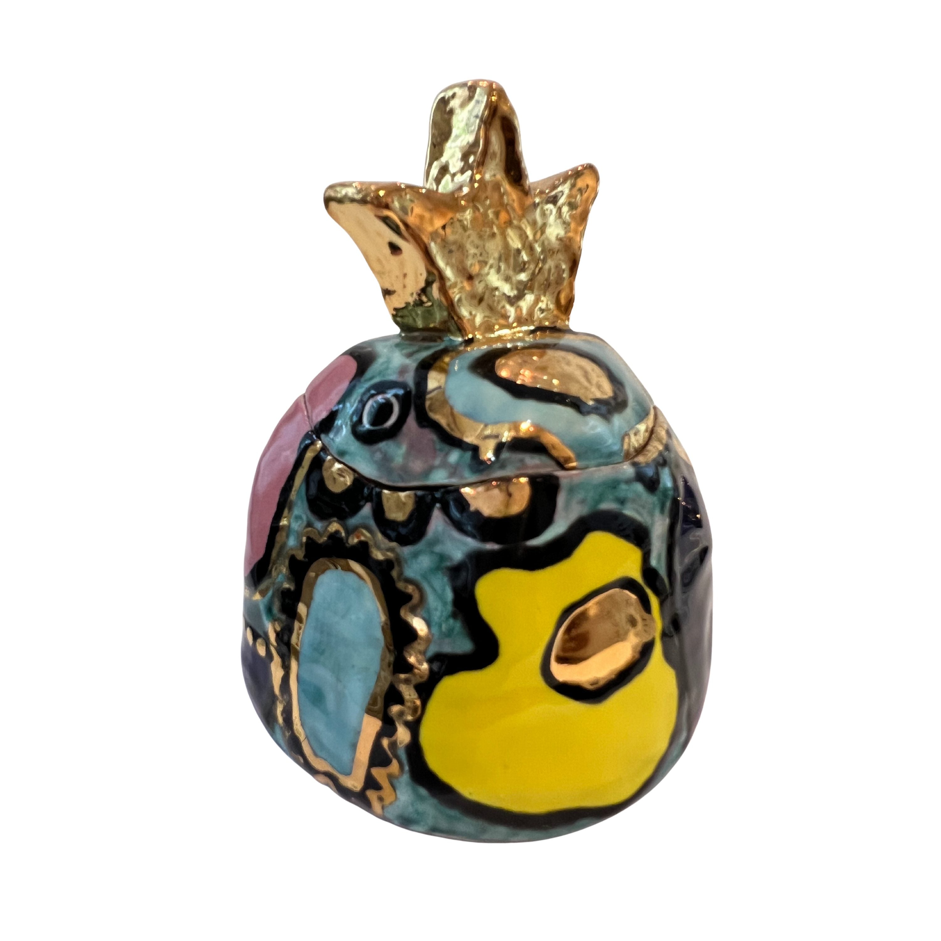 Materials: White stoneware, High and low fire glazes, Gold luster