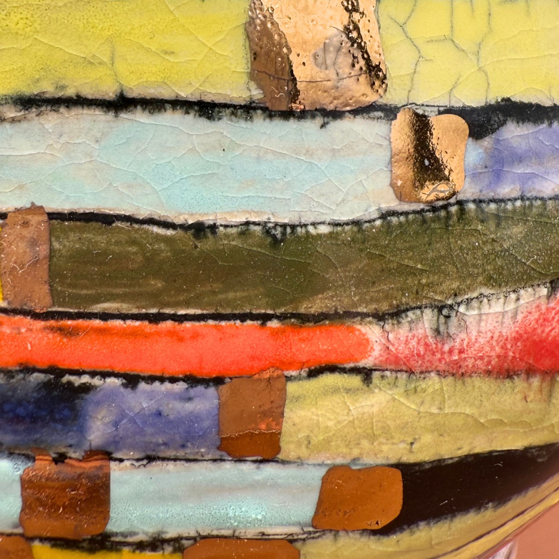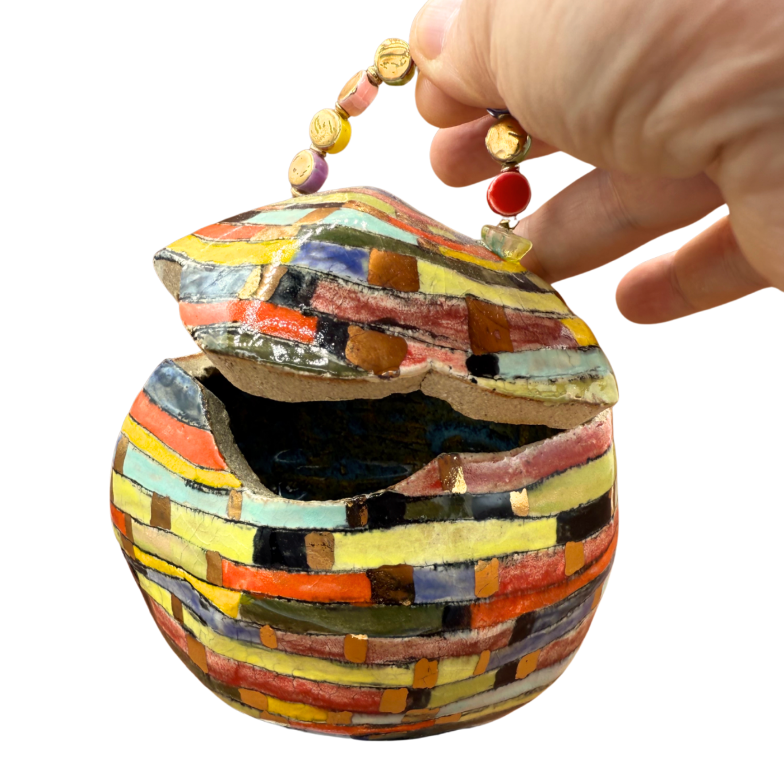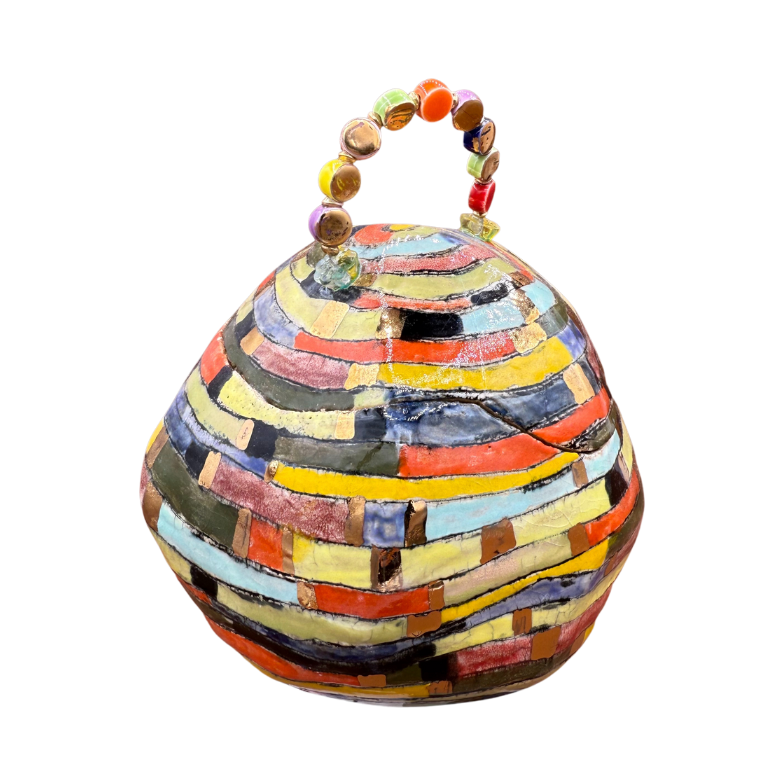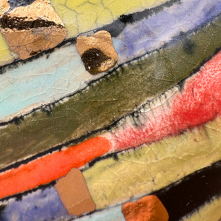 Materials: Sculpture clay, mid fire glaze, underglaze, gold luster